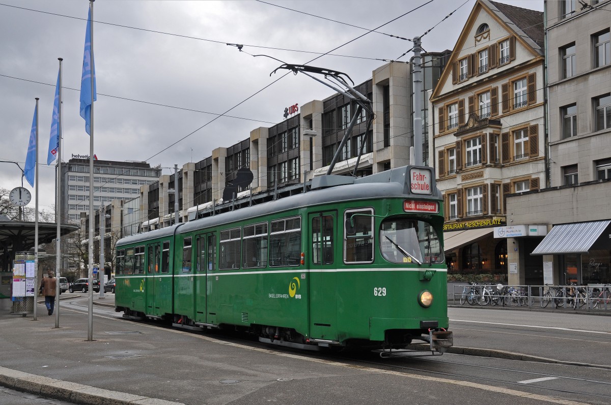 Be 4/6 Düwag 629 unterwegs mit der Fahrschule am Aeschenplatz.