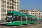 Be 4/6 Flexity 6011 mit der Werbung für die Konfitüre von Zuegg, auf der wegen einer Baustelle umgeleiteten Linie 3, fährt am 07.04.2026 zur Haltestelle am Aeschenplatz. Aufnahme Basel.