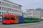 Basel BVB Tram 16 (Schindler/FFA B 1494 + Schindler Be 4/4 458) Bruderholzallee (Hst. / Endstation Bruderholz) am 3. Juli 2015.