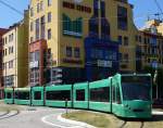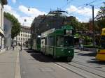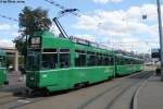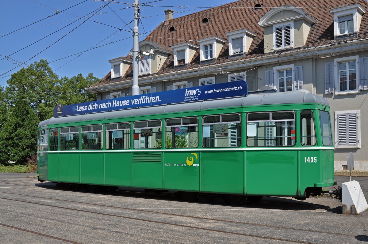 Der erste B4 Anhänger mit der Betriebsnummer 1435 ist auf dem Hof des Depots Dreispitz abgestellt und ausgemustert worden. Der Anhänger wird nun eine Reise nach Belgrad machen, wo dann weiter eingesetzt wird. Die Aufnahme stammt vom 20.08.2015.
