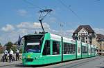 Ein Zug der Linie 3 mit einem Be 4/4 an der Spitze hält am 18.07.2015 an der Haltestelle Barfüsserplatz