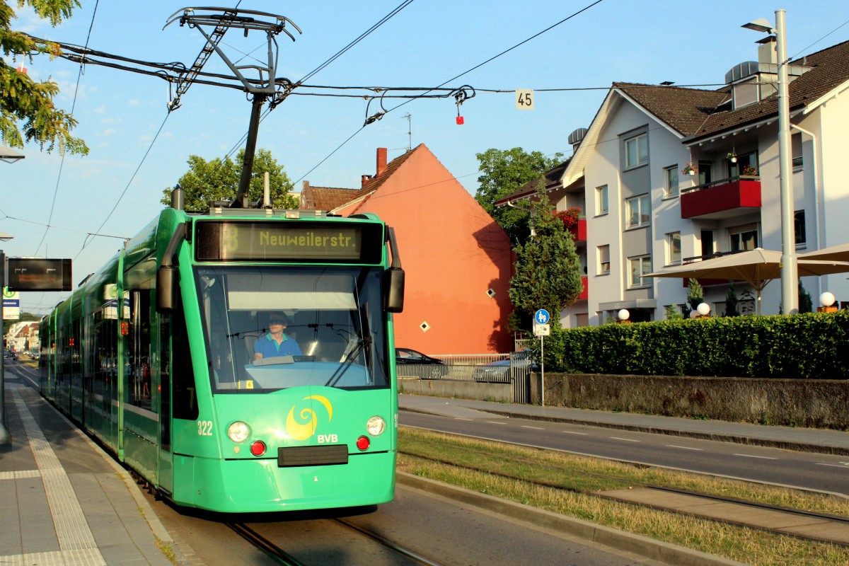 Basel BVB Tram 8 (Siemens-Combino Be 6/8 322) Weil am Rhein, Hauptstraße (Hst. Dreiländerbrücke) am 4. Juli 2015.