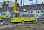 Am 1.Februar 2016 beginnt der Verlad der letzten Be 4/6 Düwag nach Belgrad. Einzig die Be 4/6 627 und 628 bleiben als Oldtimer in Basel. Hier steht der Be 4/6 629 am Verladeplatz. Die Aufnahme stammt vom 02.02.2016.