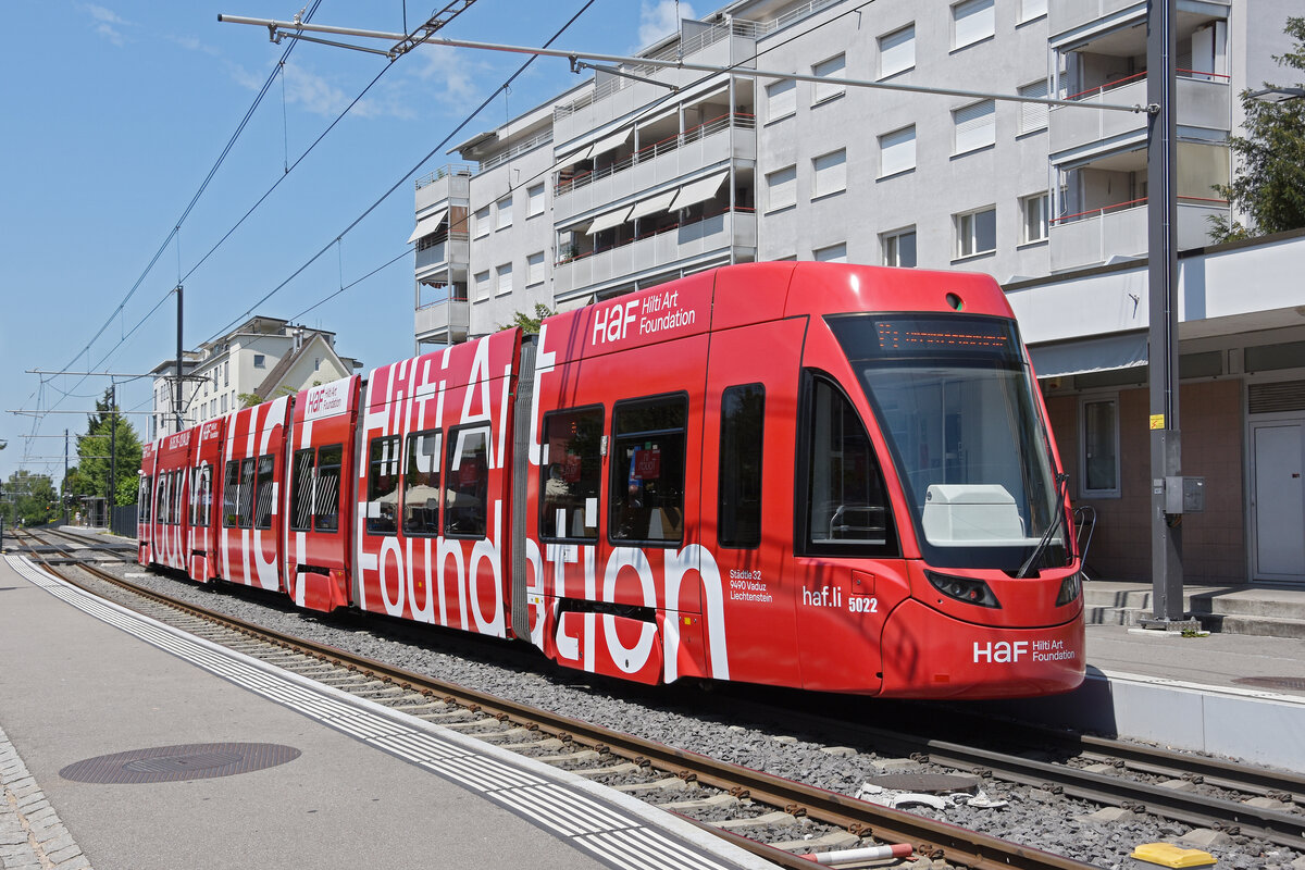 Be 6/8 Flexity 5010, mit der Turkish Airways Werbung, steht in der Schlaufe in Weil am Rhein.