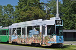 Be 6/8 Combino 319, mit einer Werbung für die Umbenennung von Thalia in Orellfüssli, fährt zur Haltestelle der Linie 6 an der Gewerbeschule. Die Aufnahme stammt vom 27.06.2016.