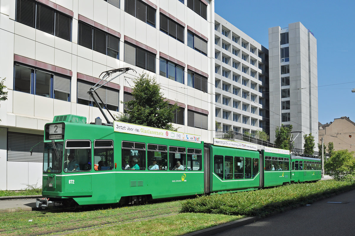Am 07.08.2016 fand eine Extrafahrt des Tramclub Basel statt. Mit dem Be 4/6S 672 und dem Be 4/4 472 begann die Fahrt am Bahnhof SBB. Bald sind die letzten Be 4/4 der Serie 457 - 476 abgebrochen. Darum hat der Tramclub die Fahrt mit der "Gummikuh" 472 durchgeführt. Auch der Be 4/4 472 wird bald die letzte Reise zur Firma Thommen antreten. Vom Riehen Dorf, geht die Fahrt zurück via Wettsteinbrücke zum Bahnhof SBB. Am Bahnhof SBB endet die Fahrt. Hier steht der Zug zwischen den Haltestellen Badischer Bahnhof und Gewerbeschule.