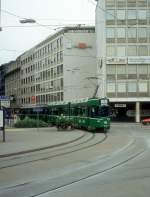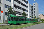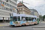 Am 04.09.2016 wurde zum ersten mal die neue Museumslinie 7 gefahren. Die Strecke führt vom M-Parc (Depot Dreispitz, wo auch das neue Trammuseum entstehen soll), via Peter Merian, Bahnhof SBB, Aeschenplatz, Barfüsserplatz, Schifflände, Claraplatz, Messeplatz zum Badischen Bahnhof und dann zur Endstation am Eglisee. Hier fährt der Be 2/2 156 zusammen mit dem Sommerwagen B2 281 zur Haltestelle am Aeschenplatz.
