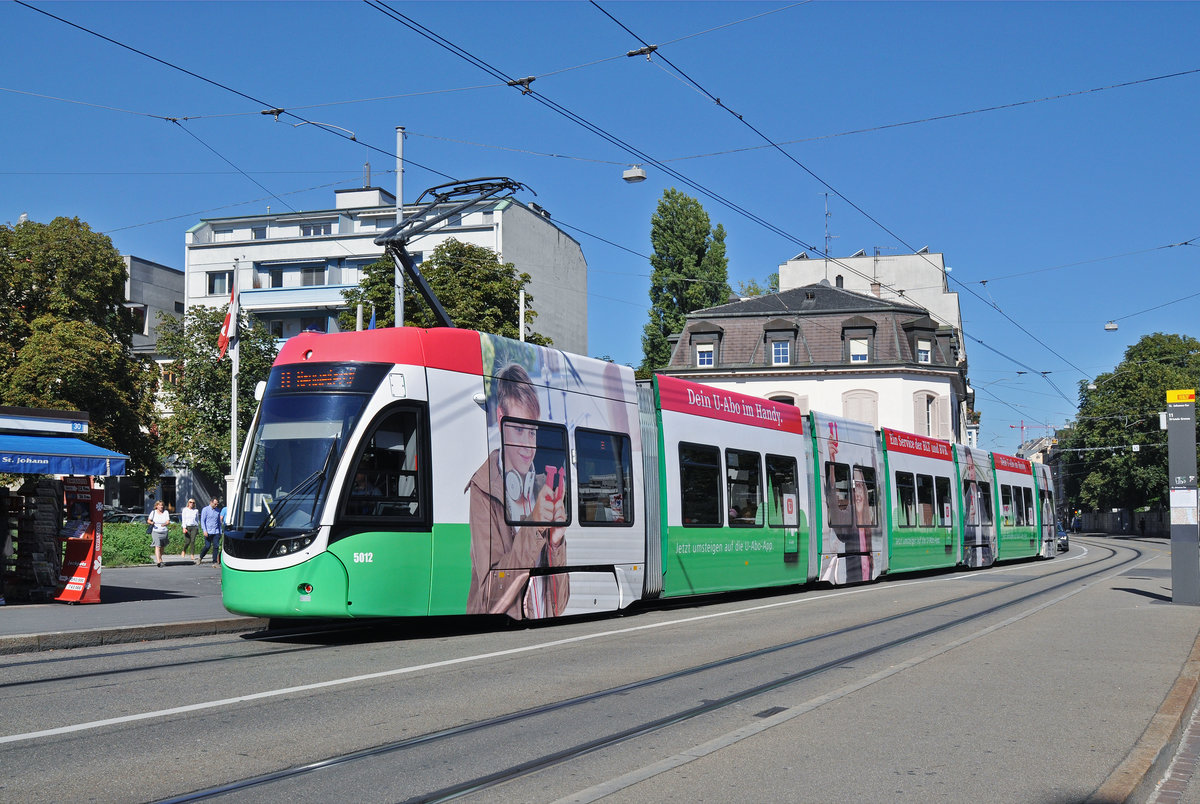 Be 6/8 Flexity 5012, mit einer U-Abo Werbung, bedient die Haltestelle der umgeleiteten Linie 8 beim St. Johann Tor. Die Aufnahme stammt vom 07.09.2016.