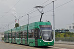 Be 4/6 Flexity 6011 mit der Werbung für die Konfitüre von Zuegg, auf der wegen einer Baustelle umgeleiteten Linie 3, fährt am 07.04.2026 zur Haltestelle am Aeschenplatz. Aufnahme Basel.