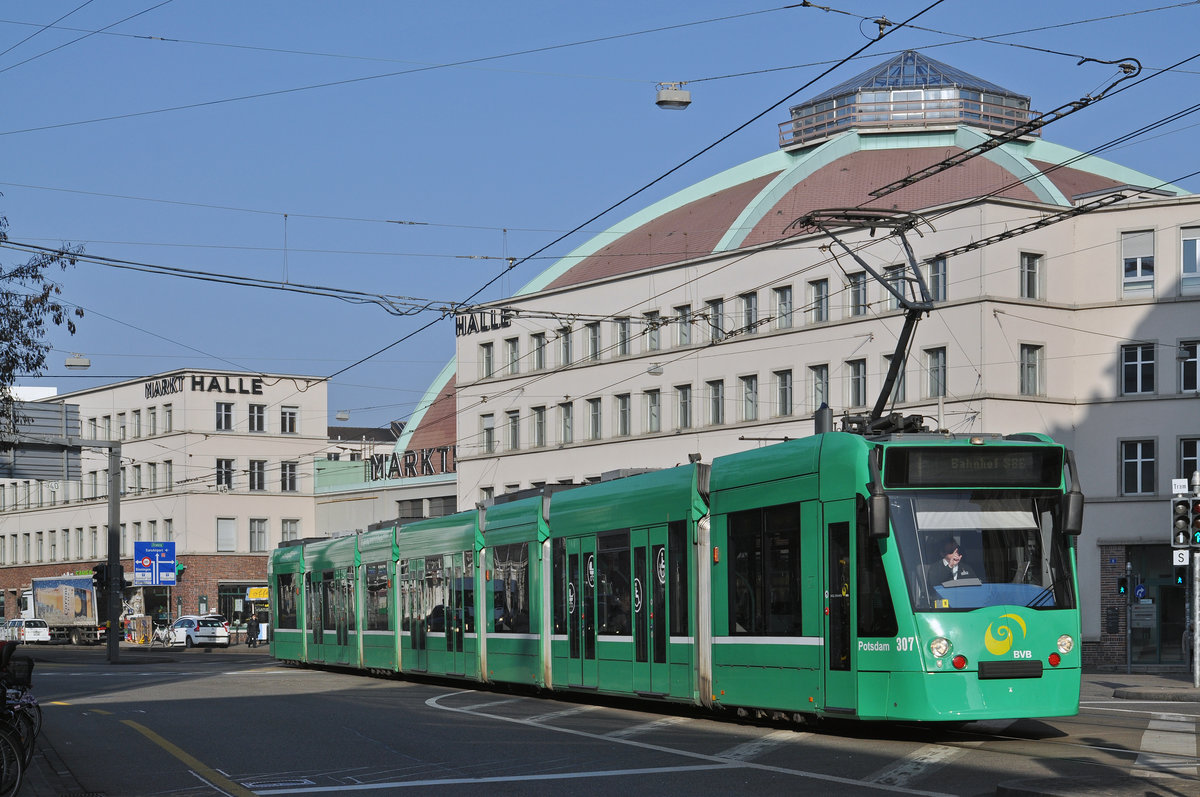 Be 6/8 Combino 307, auf der Linie 1, fährt zur Endstation am Bahnhof SBB. Die Aufnahme stammt vom 14.02.2017.