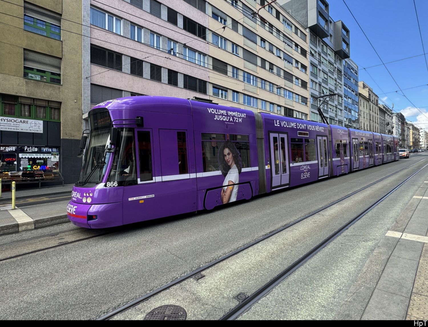 Be 6/8 Combino 669 mit der Werbung für die Lindenhofgruppe, auf der Linie 8, fährt zur Haltestelle beim Bahnhof Bern. Die Aufnahme stammt vom 24.06.2020.