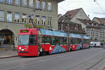 Be 6/8 Combino 670 mit der Kpt Werbung, auf der Linie 7, bedient am 11.06.2025 die Haltestelle Zytglogge beim Casinoplatz. Aufnahme Bern.