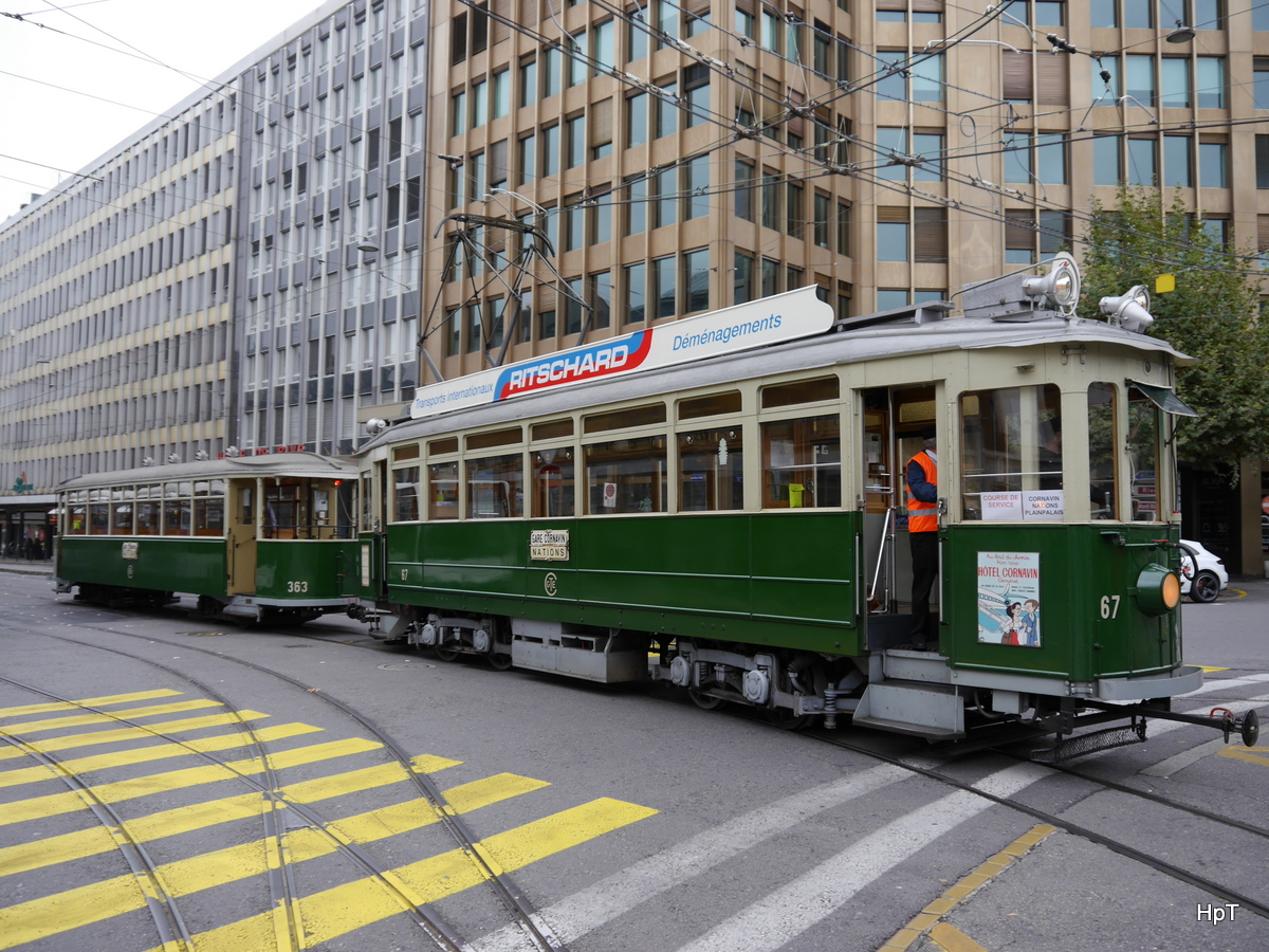 TPG - Oldtimer Be 4/4 67 mit Beiwagen B 363 unterwegs in Genf am 01.11.2015