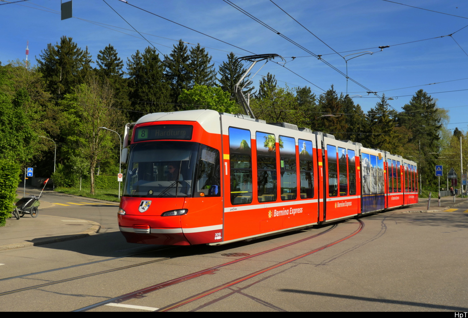 VBZ -Tram Be 6/8 4033 unterwegs auf der Linie 7 in der Stadt Zürich am 21.03.2026