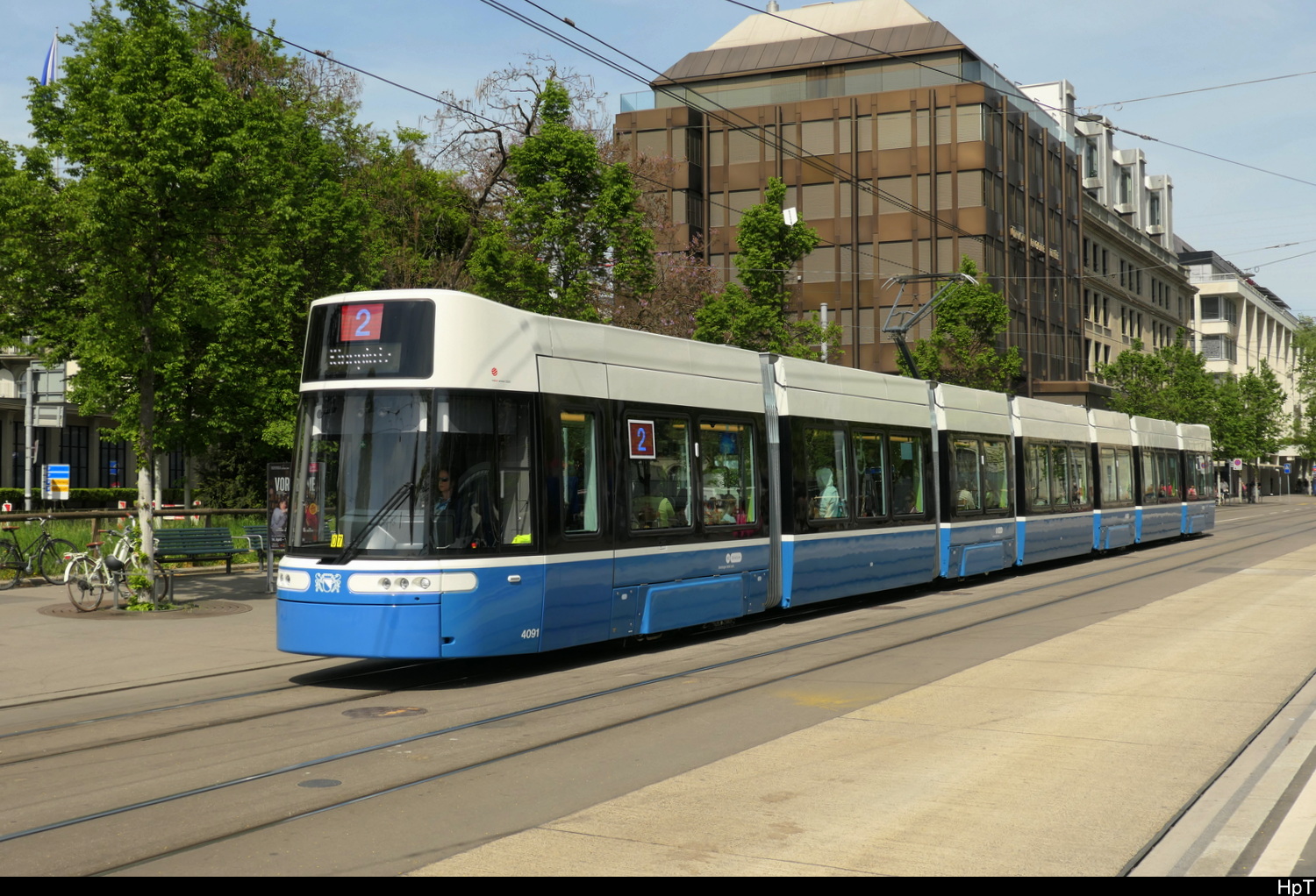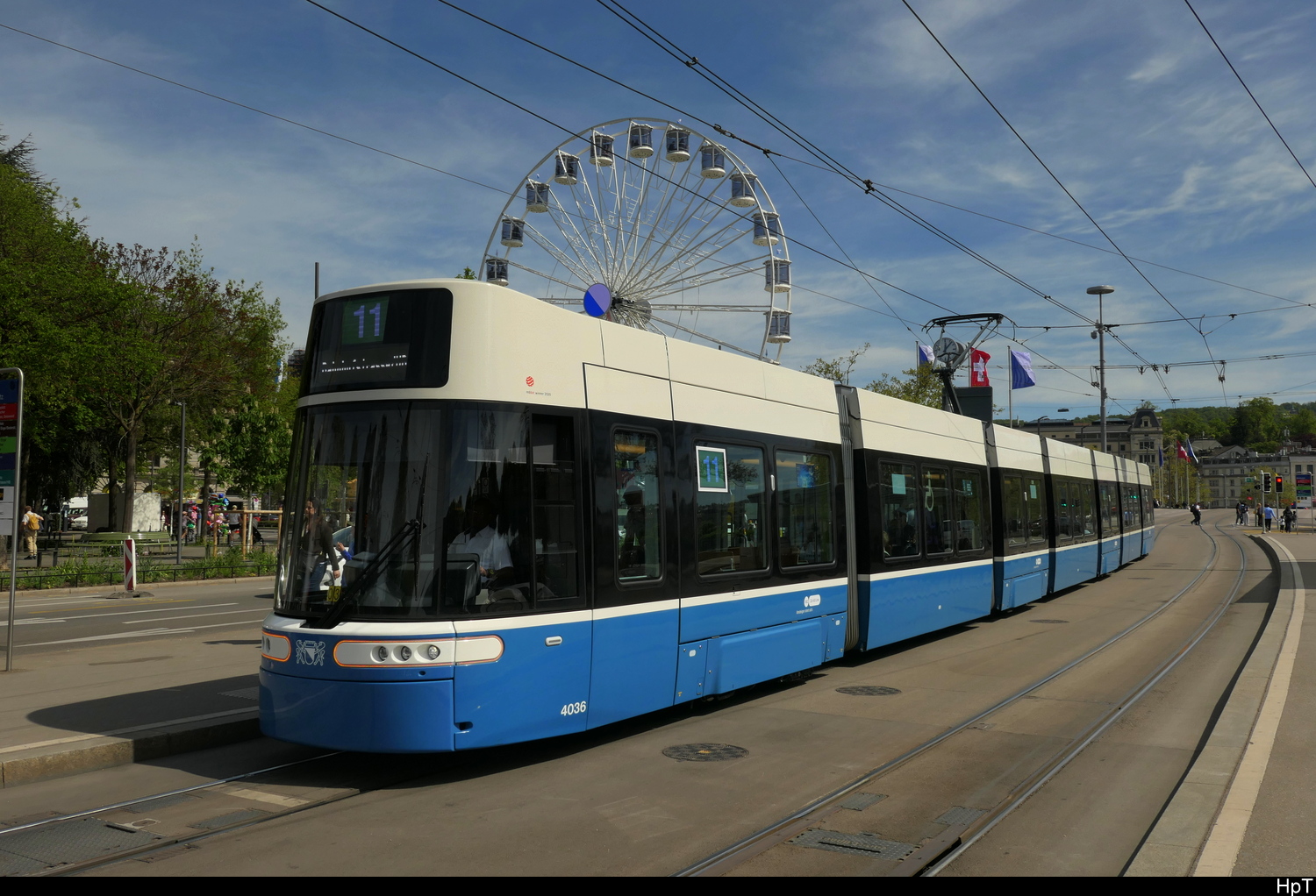 VBZ -Tram Be 6/8 4051 unterwegs auf der Linie 7 in der Stadt Zürich am 21.03.2026
