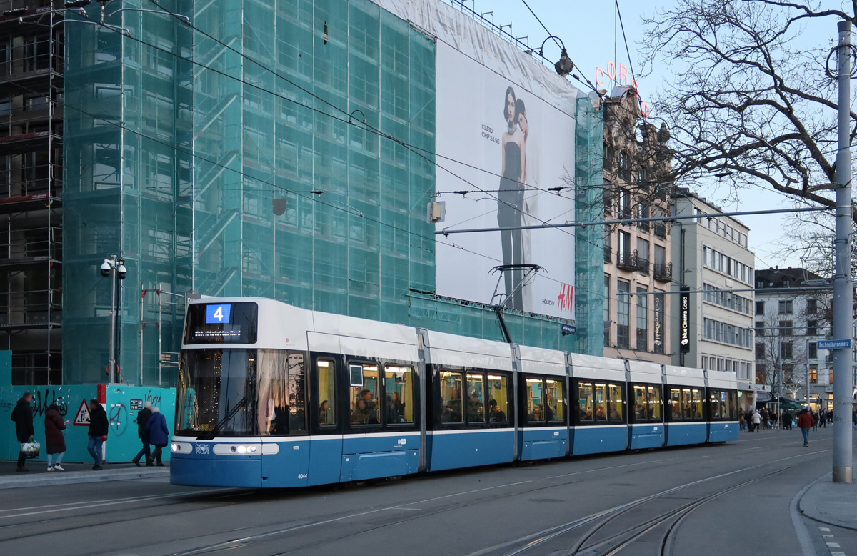 Ein Flexity Be 6/8 in Zürich, Stampfenbachplatz am 12.03.2024.