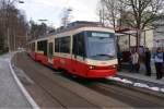 Combino in Zürich, Teil 1: Die VBZ testet noch bis und mit heute das Berner Combino. Am 1.4.10 steht der Be 6/8 659 in der Haltestelle Hegibachplatz.