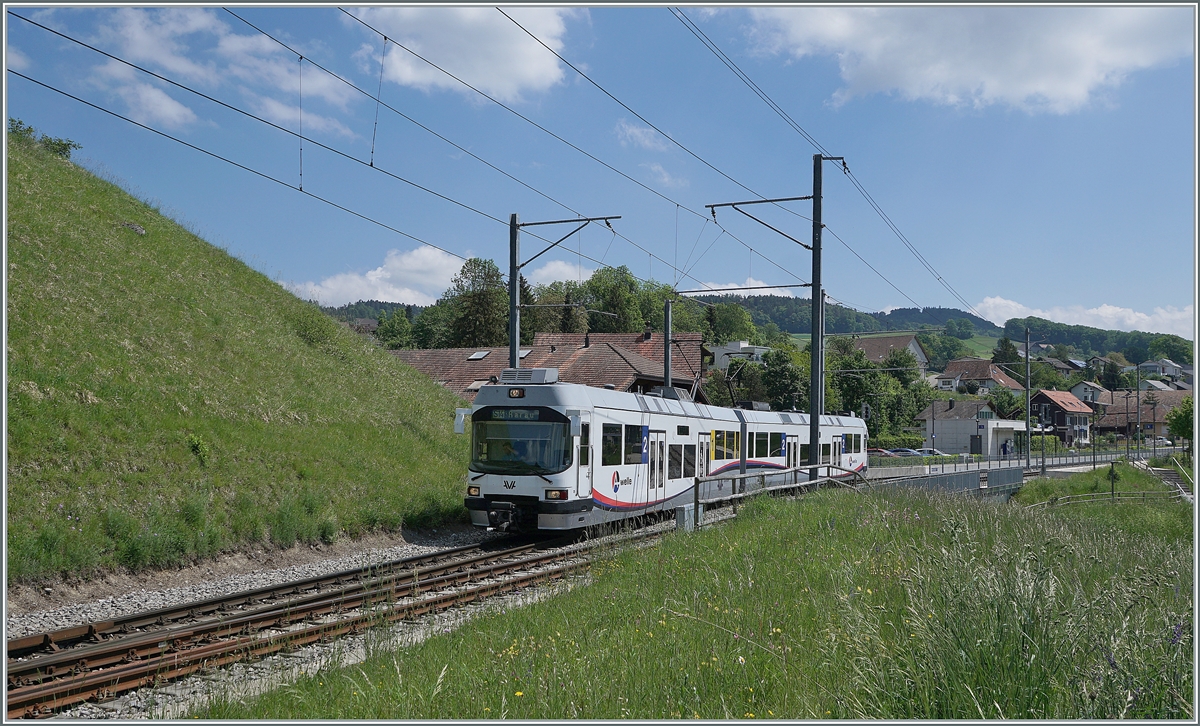 Der AVA ABe 4/8 verlässt als S 14 von Aarau nach Menziken den Bahnhof von Gontenschwil.