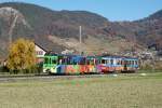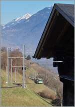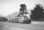 TPC: AOMC Regionalzug mit dem BDeh 4/4 11 (1954) + B2 + B2 auf dem alten Strassen-Streckenabschnitt bei Aigle im Frühjahr 1979.
