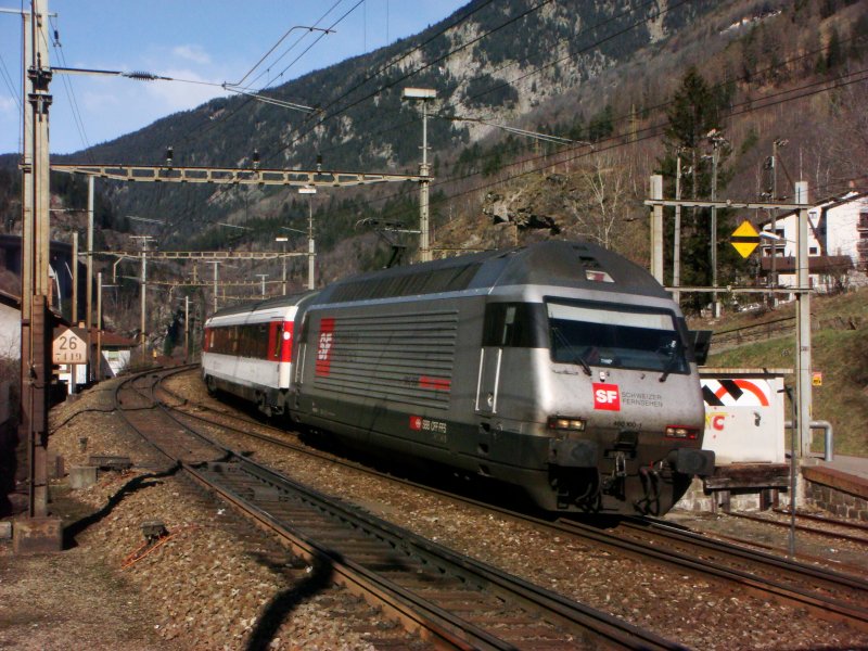 Re 460 100 mit EC nach Venezia S.L. am 20.3.2008 bei Faido.