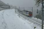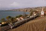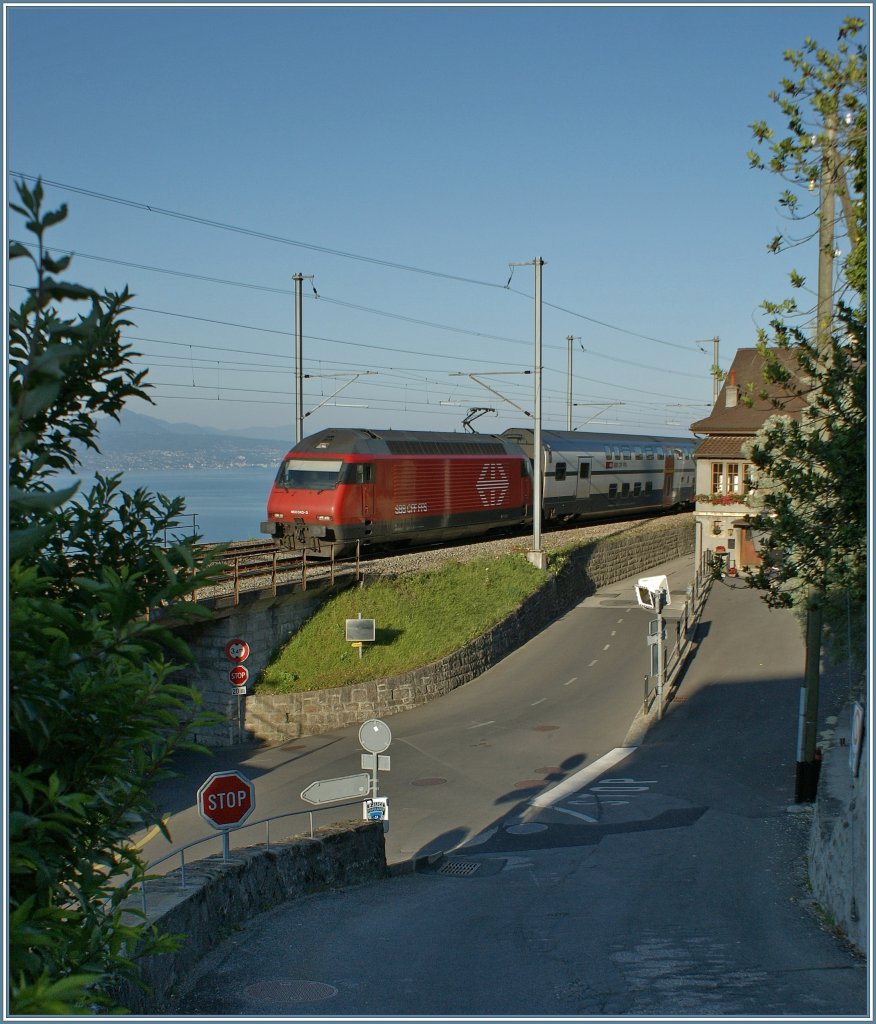 Nischenfotografie; nicht immer reicht der Platz, den ganzen Zug aufs Bild zu bekommen: Re 460 043-3 mit IC 715 nach St. Gallen in Grandvaux am 23. Juni 2010.