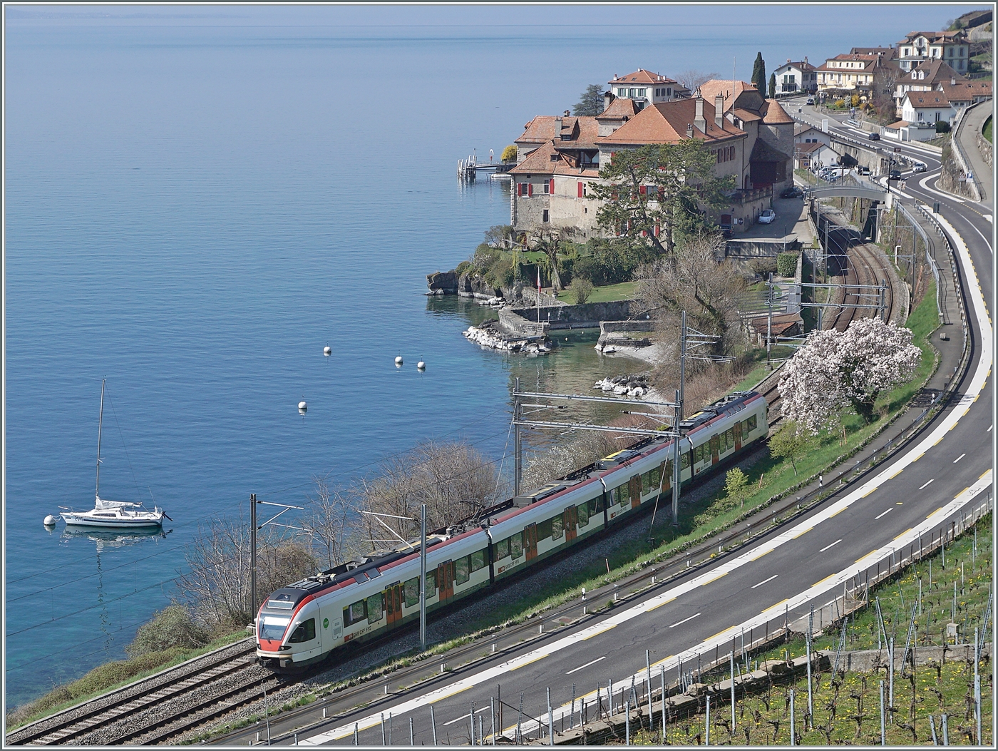 Wie gut das Zwischen Berg und Wasser noch Platz für eine Eisenbahn war. Schönes Bild Gruß Stephan