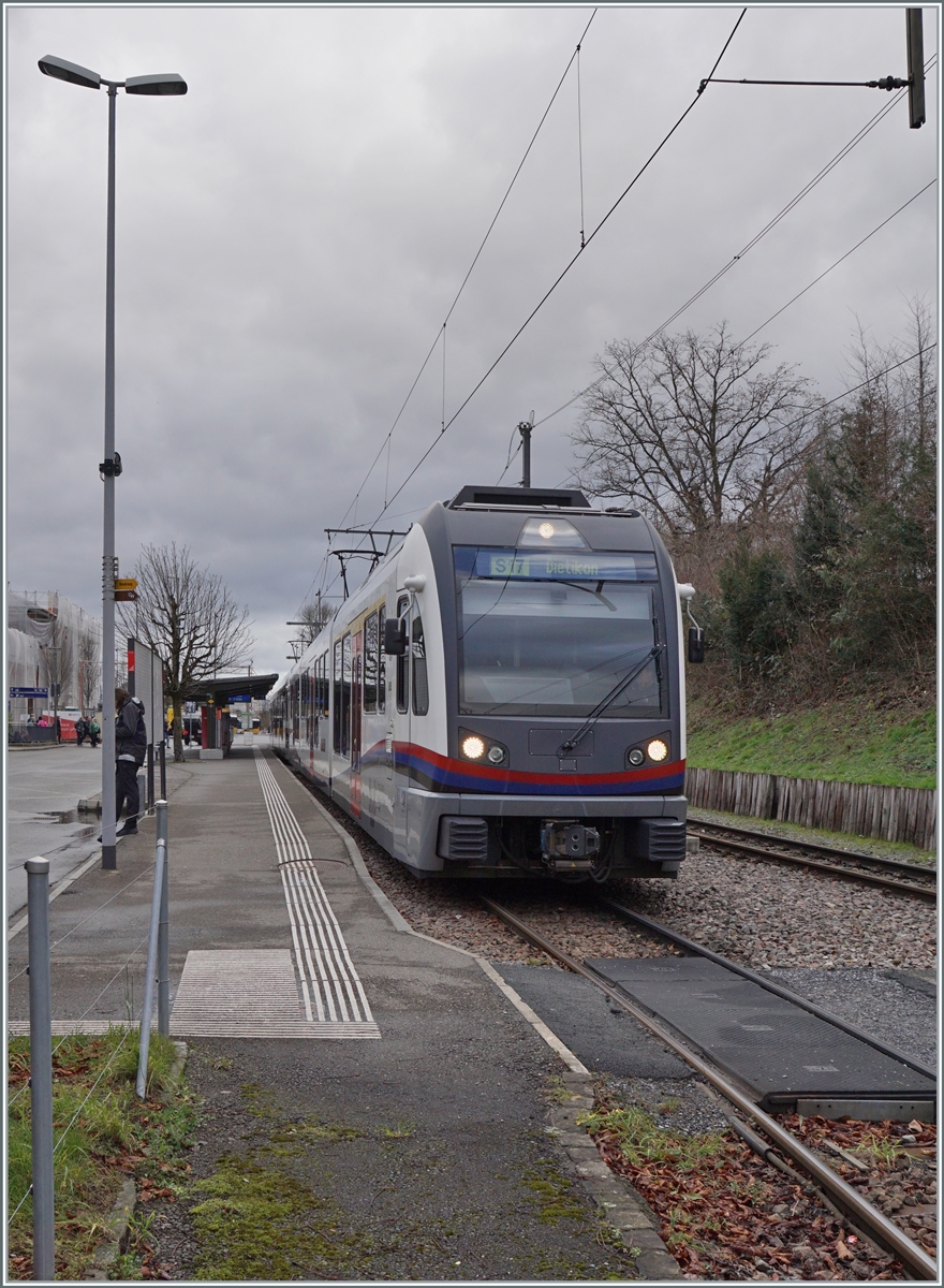 Zwei AVA BDWM ABe 4/8 "Diamant" warten in Wohlen auf die Abfahrt als S17 nach Dietikon, hier nun die Ansicht von der Zugsspitze. 6. Dezember 2024