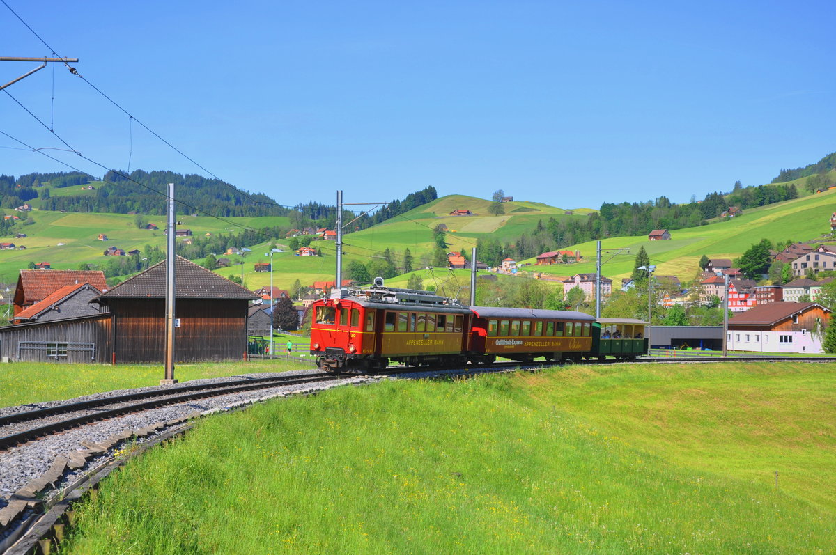 Der Historische Triebwagen BCe 4/4 der Appenzellerbahnen war am 28.5.17 als Appenzeller Nostalgie Express unterwegs. Aufgenommen in Urnäsch Thomas Schnyder