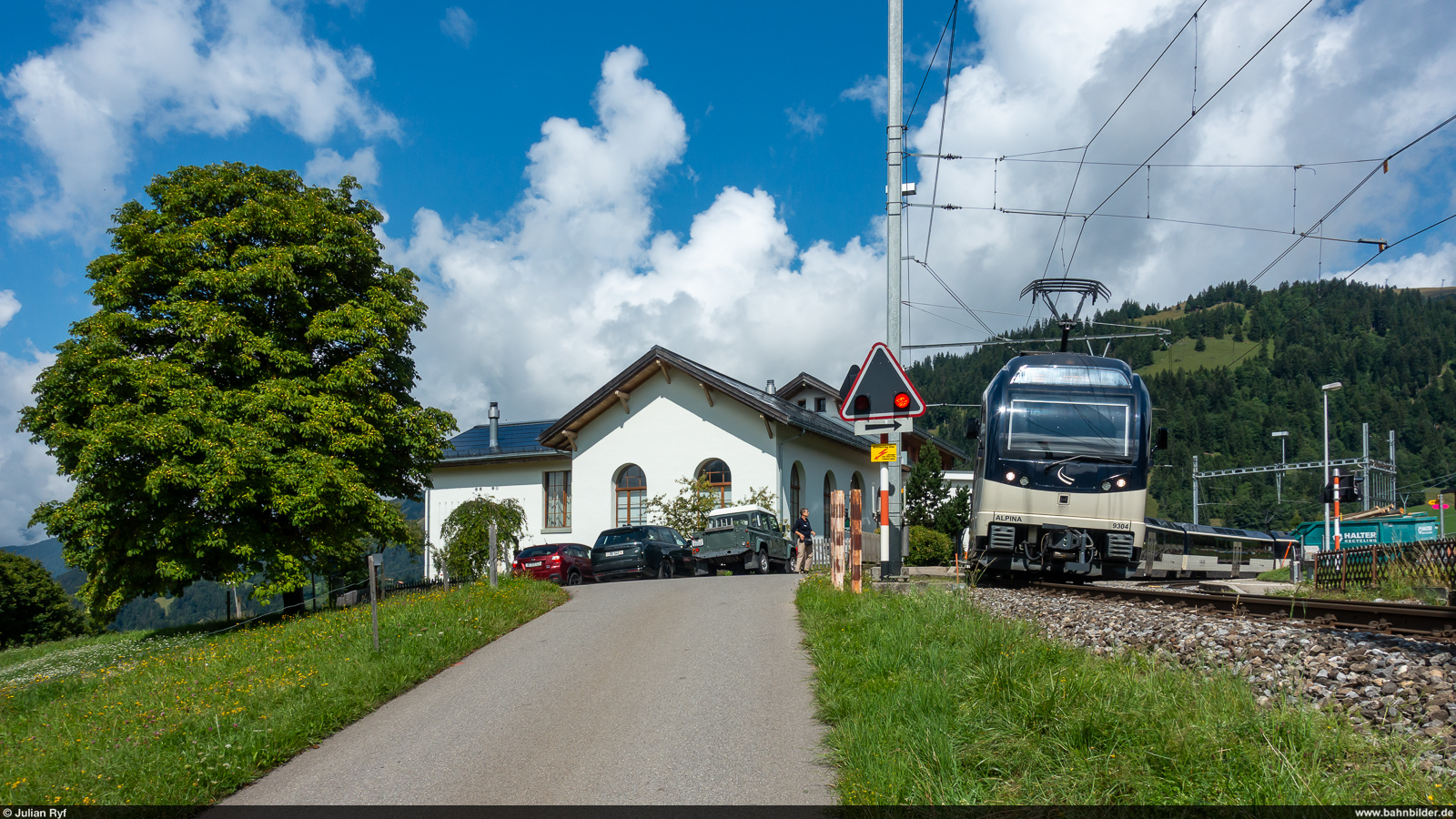 Das neue Gesicht der MOB: Ge 4/4 und Alpina im modernisieren Bahnhof von Château d'Oex.