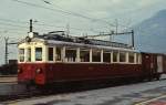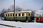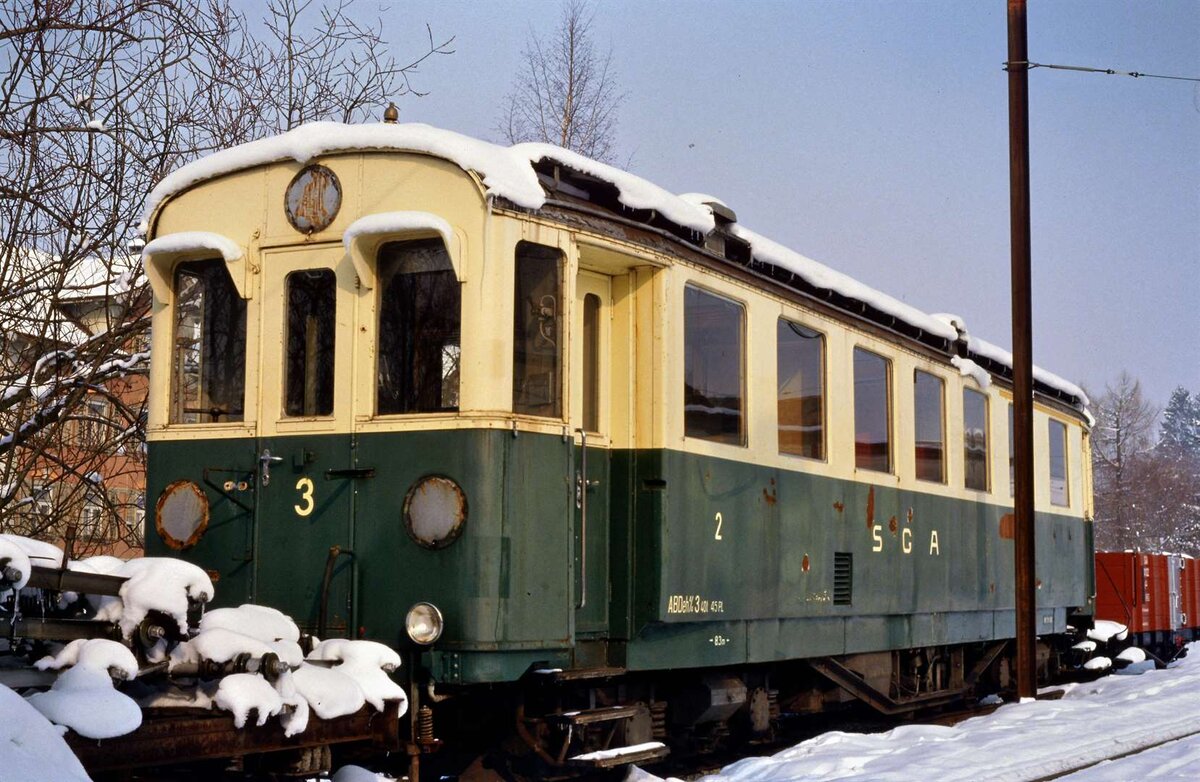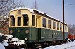 Nur noch als  Rest  vorhanden war Wagen ABDeh 4/4 Nr.3 (frühere Schweizer Privatbahn SGA, Gais, Schweiz, 12.02.1986)