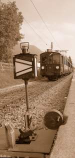 Der schiebende Martigny-Châtelard Pendelzug BCFeh 4/4 N° 15 von seinem Steuerwagen BFZt4 N° 75 aus bedient verlässt Blonay in Richtung Chamby. Der damals 100 Jährige Zug war im Rahmen der Themenveranstaltung "Le Valais en fête sur la BC" bei der Blonay-Chamby Bahn. Heute ist der Zug ist im Besitz der TNT, welche ihn zur Zeit einer aufwändigen Revision unterzieht. 26. September 2009