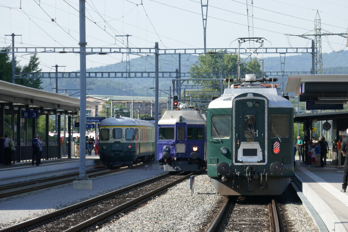 Bt vom EBT Pendel mit dem Tunnelkino ABe 4/4 und BDe 4/4 von SBB Historic anlässlich des Triebwagentreffen am 1.8.17 in Koblenz.