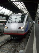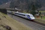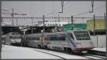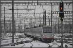 Ein Cisalpino ist am 07.01.2012 bei Silenen unterwegs nach Mailand