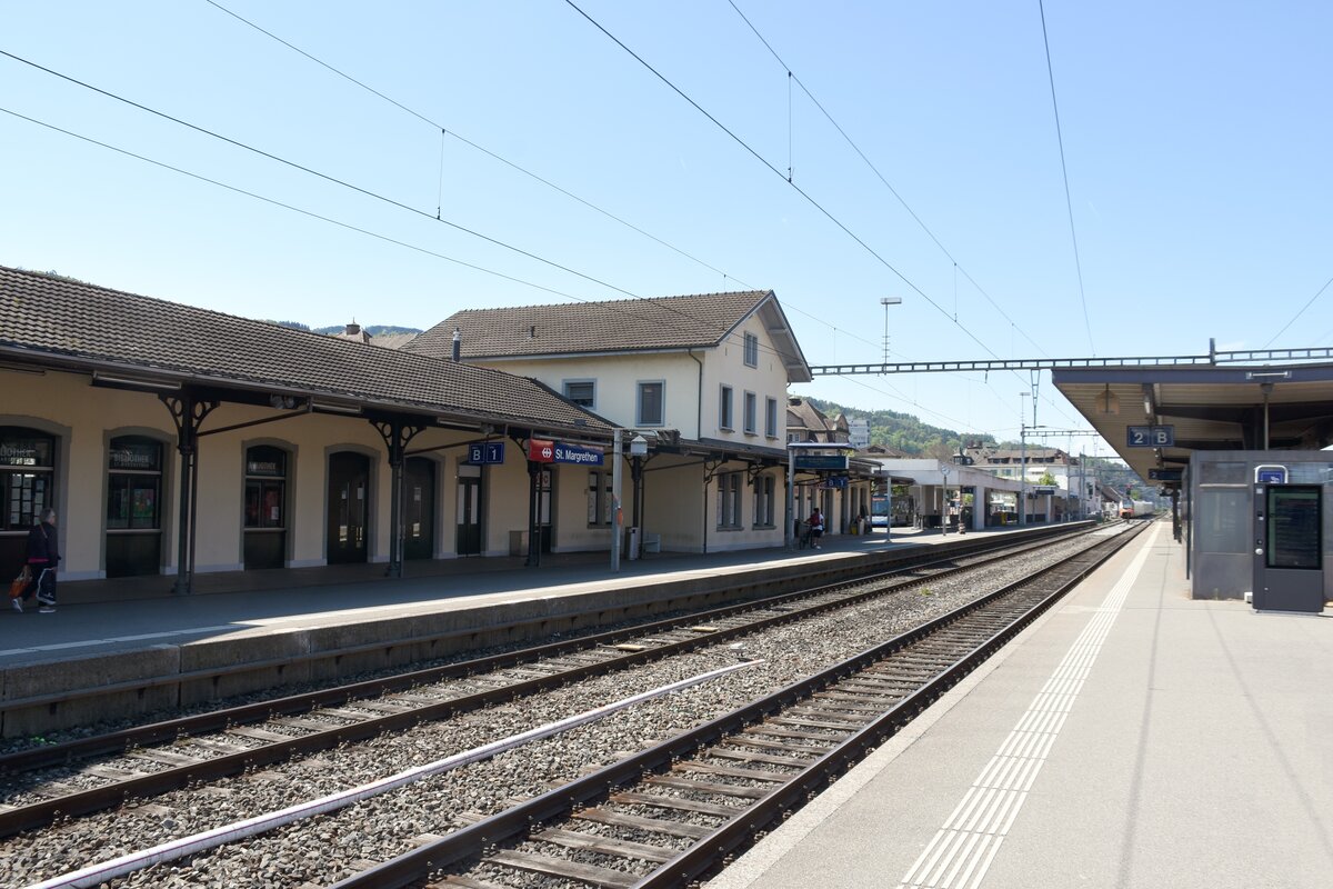 ST. MARGRETHEN (Kanton St. Gallen), 23.04.2025, ein IC Richtung St. Gallen bei der Einfahrt in den Bahnhof St. Margrethen