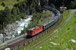 Eine Doppelgarnitur SBB RABDe 500 (ICN), angeführt von 500 016 "Alice Rivaz", durchfährt die Wattinger Kurve (untere Trasse) in Richtung St. Gotthard (14.08.2009).