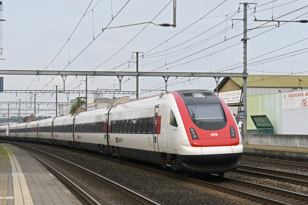 Lok 91 85 4 410 016-0 neben dem Ausfahrendem ICN 500 007 in Solothurn am 28.05.2025