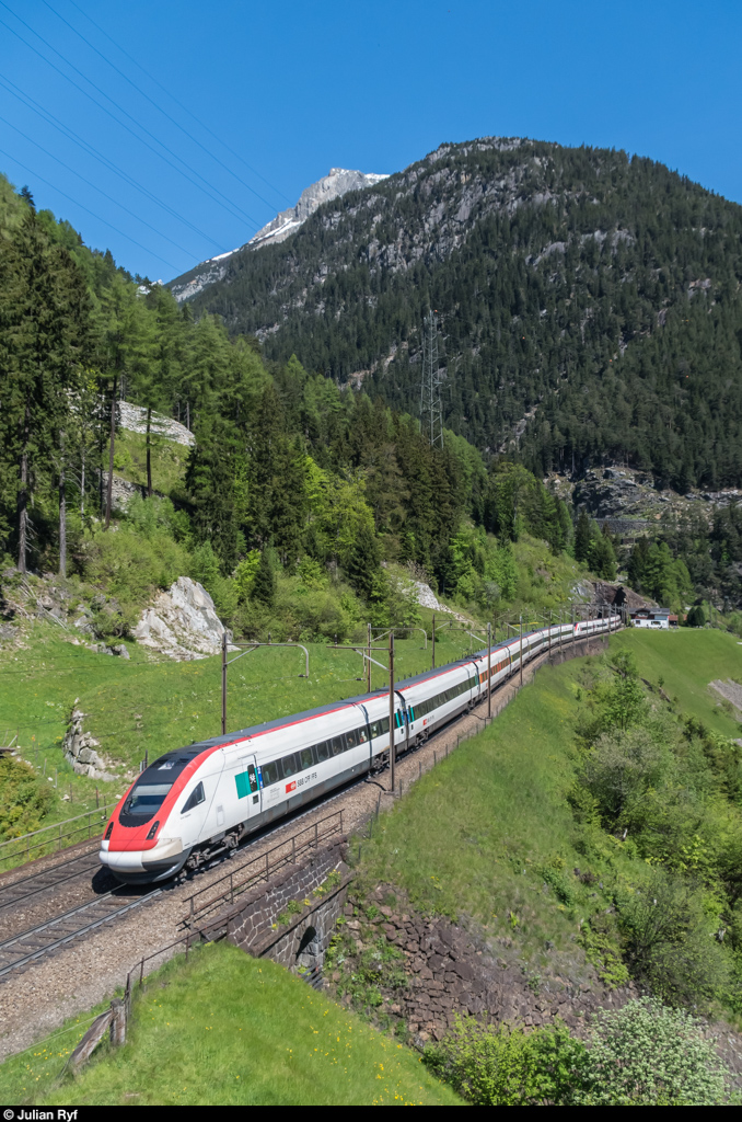 RABDe 500 040 "Graf Zeppelin" fährt am 21. Mai 2016 als ICN 667 Basel SBB - Lugano bei Wassen südwärts.