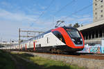 RABDe 502 010-7 Twindexx durchfährt den Bahnhof Muttenz. Die Aufnahme stammt vom 16.02.2020.