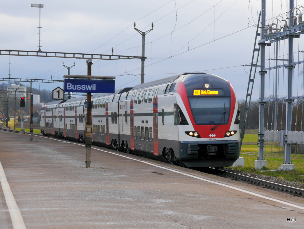 SBB - Triebzug RABe 511 107 bei der durchfahrt im Bahnhof von Busswil am 03.02.2018