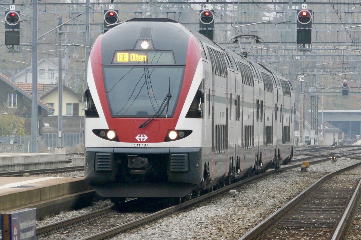 RABe 511 107 als RE nach Olten, am 4.11.18 bei der Einfahrt in Burgdorf.