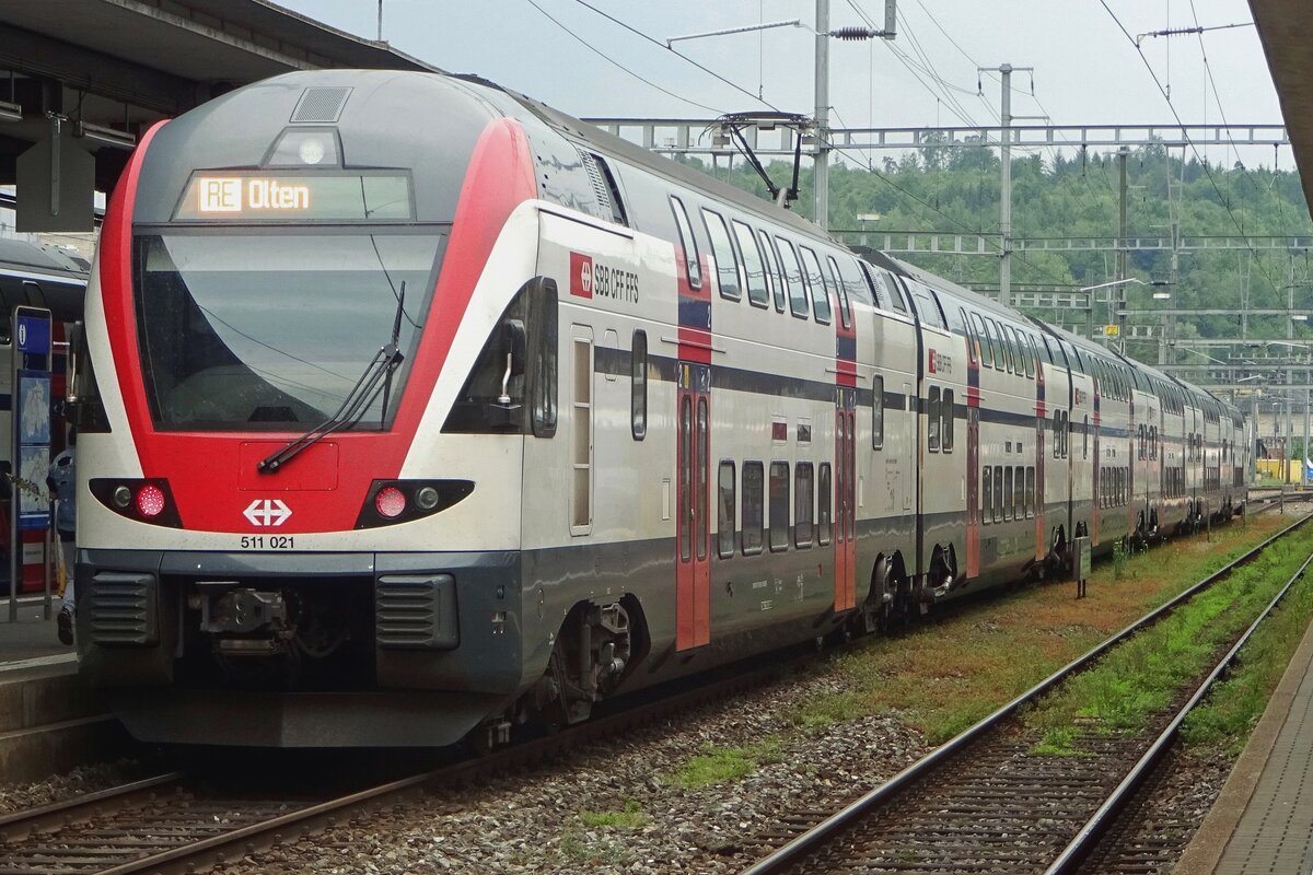 RABe 511 011 durchfährt am 10.06.2024 den Bahnhof Rupperswil.