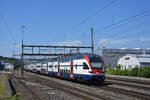 In Lancy-Pont Rouge treffen sich die RE 33 18454 (links im Bild) und der RE 18463 (rechts im Bild). Während der RE 18454 von Martigny nach Annemasse noch mit RABe 523 Triebzügen geführt wird, steht für den Gegenzug zwei komfortablere RABe 512 als RE 33 18463 von Annemasse nach Martigny im Einsatz.