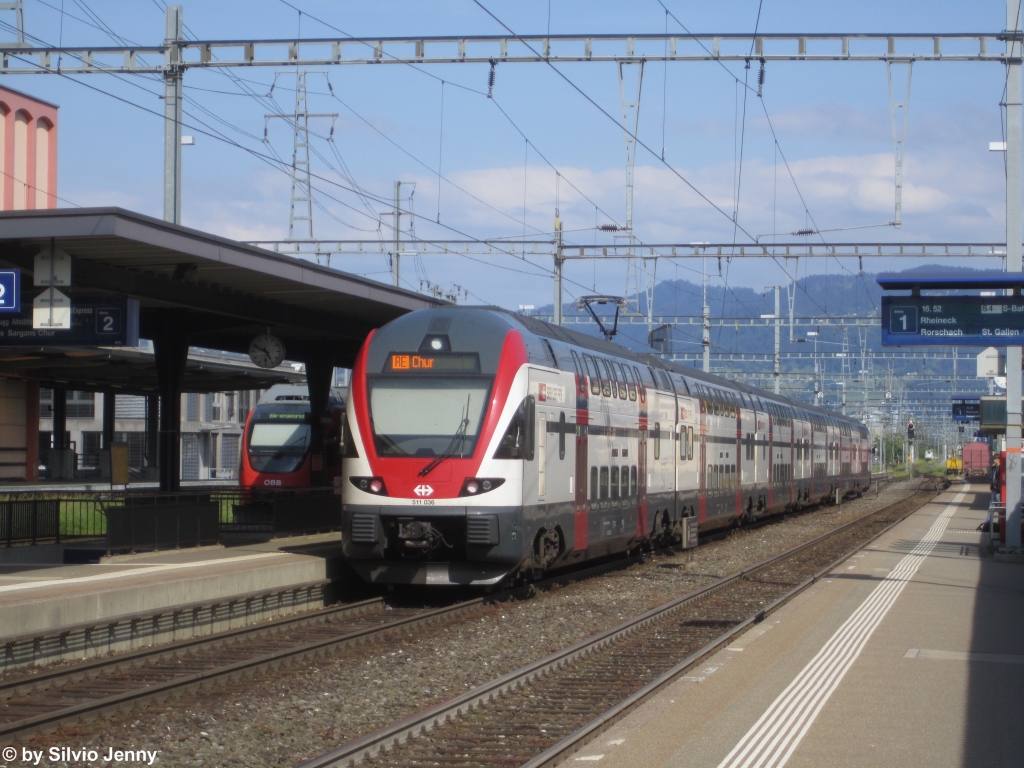 RABe 511 036 am 17.5.2015 in St.Margrethen als RE 4879 nach Chur.