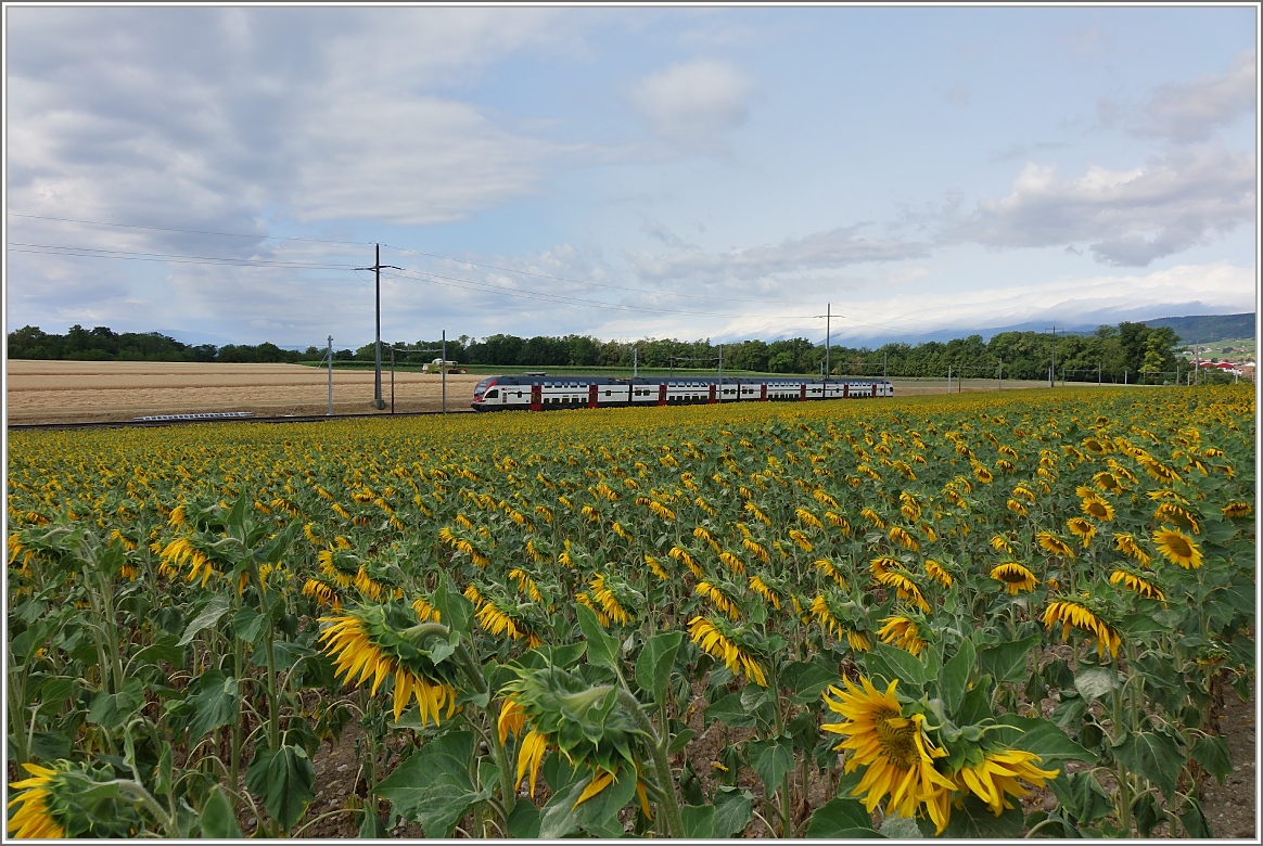 Die vierteilige Variante des RABe 511 als RE von Genf nach Romont bei Allaman.