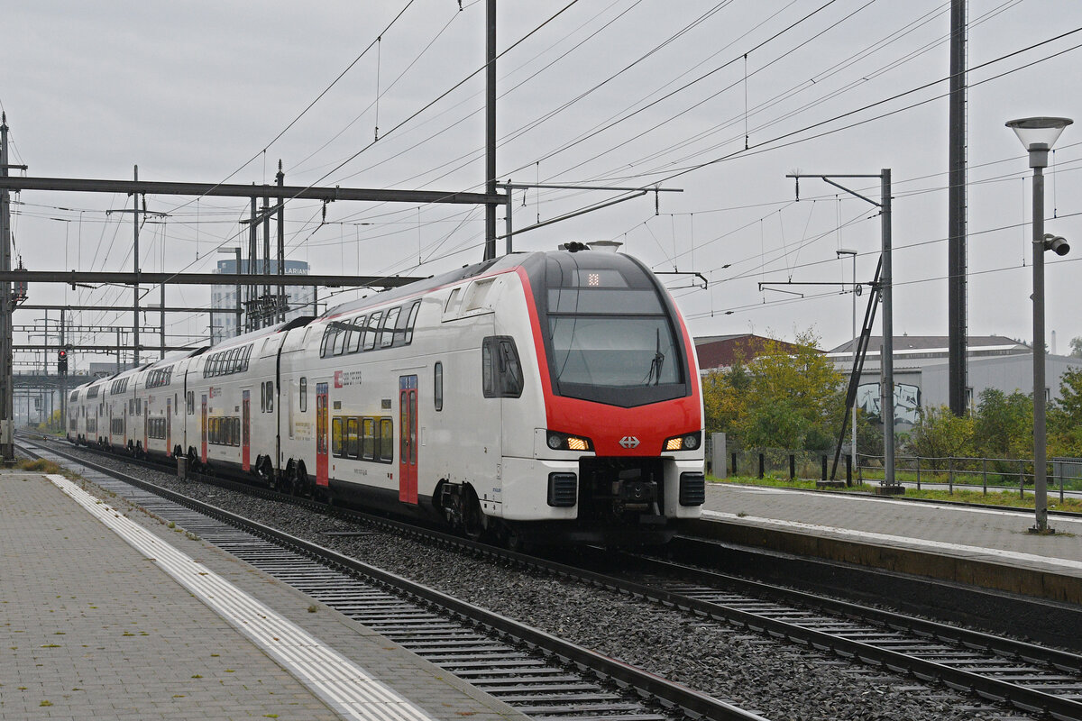 RABe 512 007-1 KISS durchfährt am 20.10.2025 den Bahnhof Pratteln.