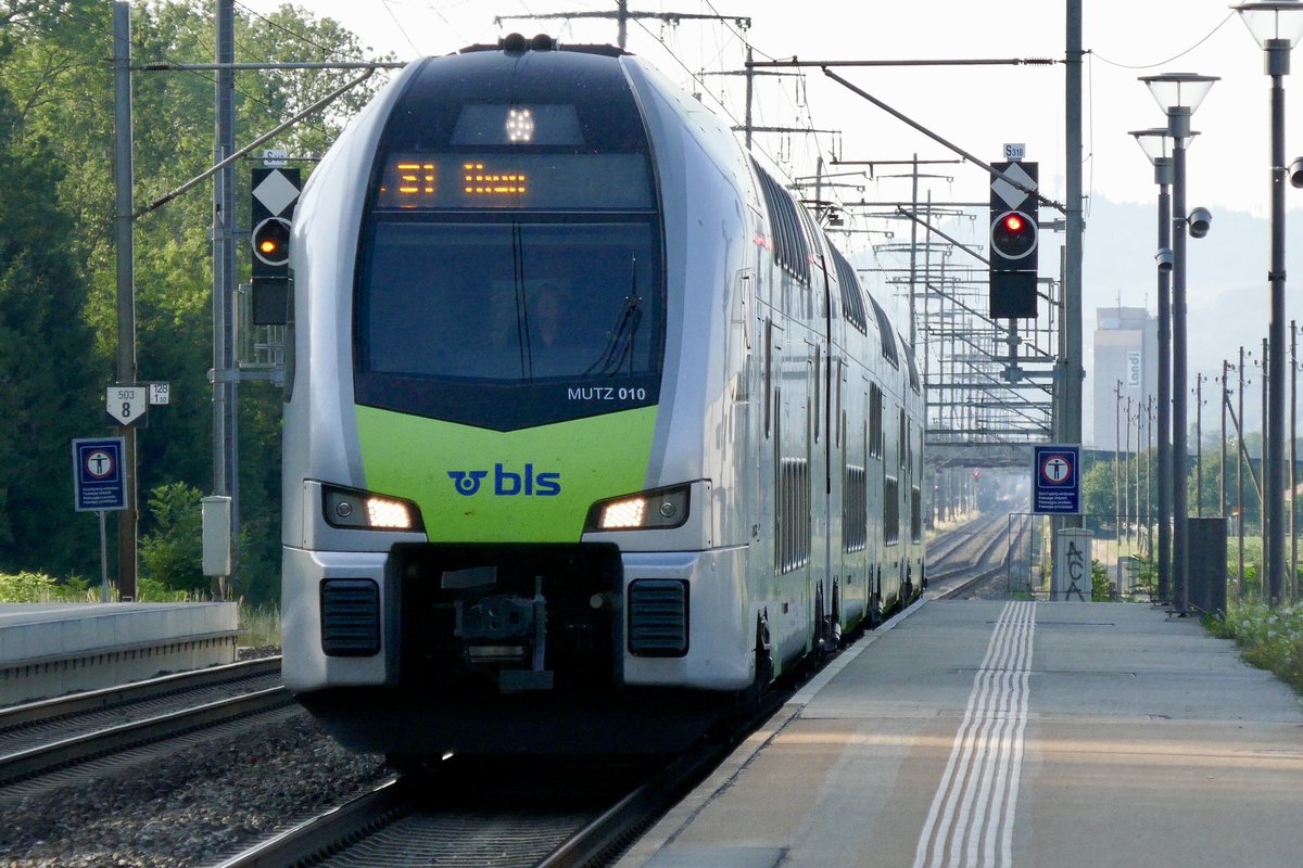 BLS Mutz 010 am 1.7.18 bei der Einfahrt in den Bhf Kiesen.