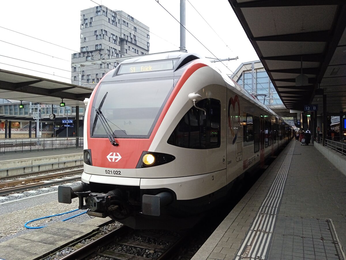 Einfahrt am 12.10.2015 von RABe 521 005 als Pendel-S6 (Basel SBB - Basel Bad Bf - Basel SBB) auf Gleis 2 in den Badischen Bahnhof von Basel.