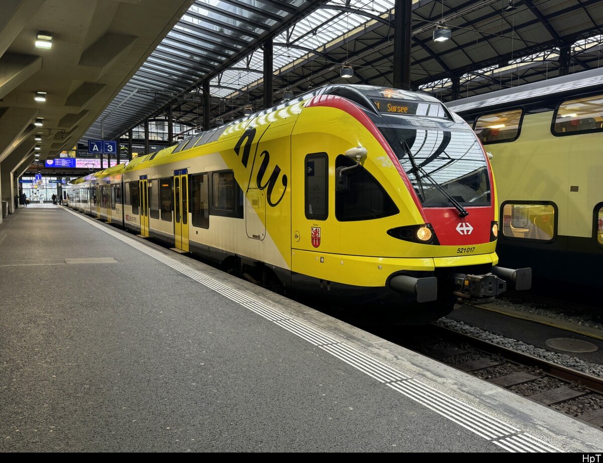 Auf der Fahrt von Radolfzell nach Konstanz passiert RABe 521 204 am 16.01.2021 als SBB 87673 einen Fußgängerübergang zwischen Allensbach und Hegne.