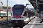 RABe 521 014, auf der S3, verlässt am 27.03.2023 den Bahnhof Gelterkinden.