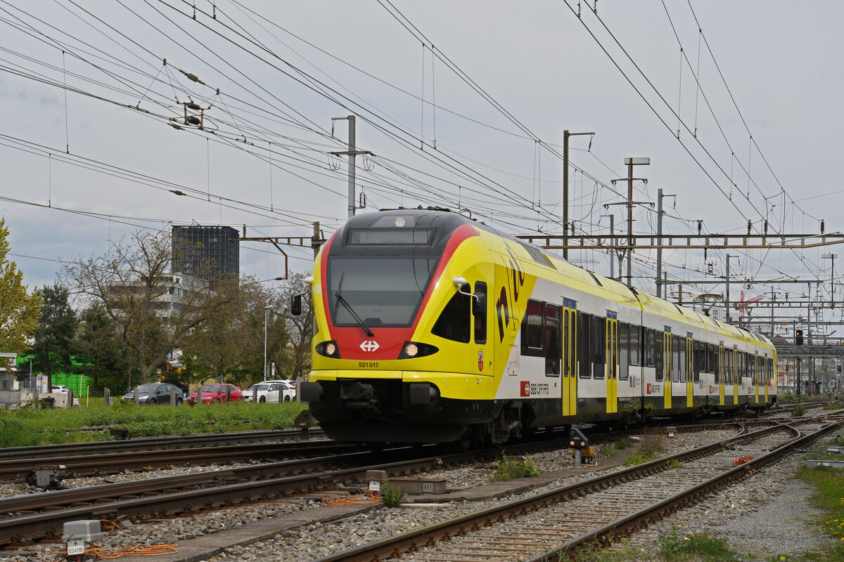Badische Hauptbahn, die letzten Kilometer (X). 521 207, ein Seehas mit "falscher Nummer" ist gerade in Markelfingen gestartet. April 2011.